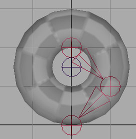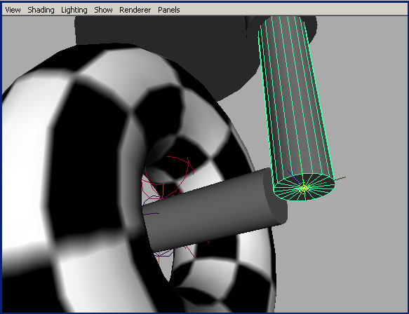 Rename the poly Torus "Wheel" and turn it on it's side. Its ideal attributes are 0, 1.5, 0 for translate values and 0, 0, 90 for rotation. Place a joint in the center (same translate attributes) and make the Torus a child of the joint. This will be our point of rotation for the wheel. Rename the joint "axle" so we can find it later. |